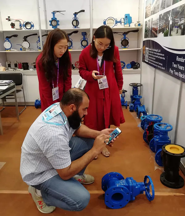般德展位陳列整齊,琳瑯滿目,產(chǎn)品外形美觀,吸引了眾多來自世界各國的客戶駐足了解。三位外貿(mào)精英身著醒目的中國風(fēng)紅色長裙,面帶微笑地接待每一位客戶,為他們提供專業(yè)的產(chǎn)品介紹與服務(wù)。一位意大利的客戶一大早就拿著般德特制的展會(huì)邀請(qǐng)函來到了般德展位,在了解了般德新型蝶閥產(chǎn)品后,對(duì)閥門的質(zhì)量和外觀贊不絕口,隨后,客戶列出了自己需要的閥門配置和要求,請(qǐng)工作人員稍后給出報(bào)價(jià)。