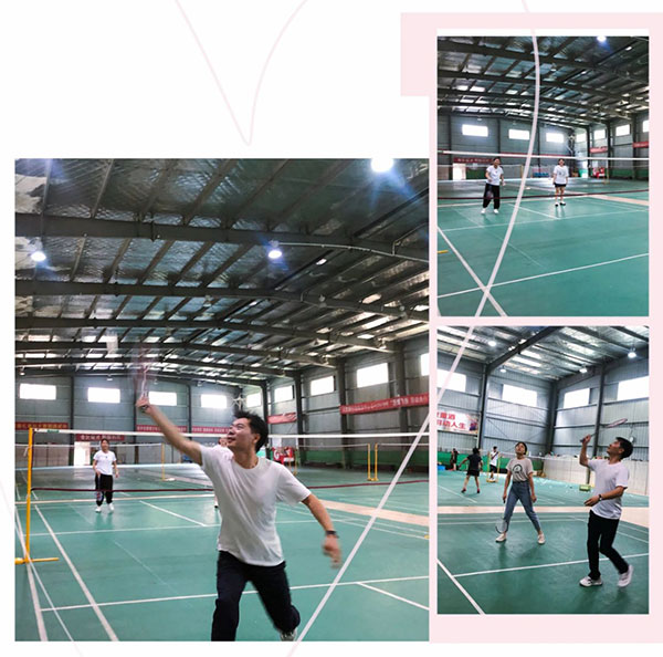 吃完飯,大家戴上運動裝備,到羽毛球館打羽毛球,大家輪番上陣,經(jīng)過幾小時的運動,都滿頭大汗,酣暢淋漓的運動讓大家身心舒暢,一掃工作帶來的疲乏。