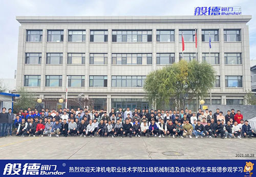 2021年10月28日,天津機(jī)電職業(yè)技術(shù)學(xué)院21級(jí)機(jī)械制造及自動(dòng)化師生共122人,來到般德閥門天津工廠參觀學(xué)習(xí)。
