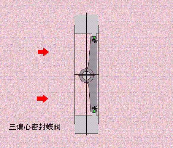 三偏心金屬密封蝶閥在雙偏心的基礎上增加了些個偏心角,不僅利用了原有的凸輪效應,而且完全消除了90°行程中閥座與密封圈之間的摩擦。