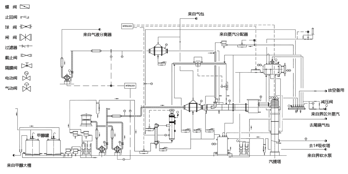 進料氣化及產品冷卻:進料汽化和產品急冷區由甲醇進料緩沖罐,進料閃蒸罐,洗滌水汽提塔,急冷塔、水汽提塔等組成。經閃蒸罐出來的介質溫度較高,能達到350℃,閥門主要材質由碳鋼及不銹鋼閥門組成。急冷塔介質溫度偏低,實際溫度能達到-110℃,閥門需要采用延長閥蓋結構,且液化介質殘留在中腔,溫度升高后壓力過大,需注意閥門必須設計卸壓孔。